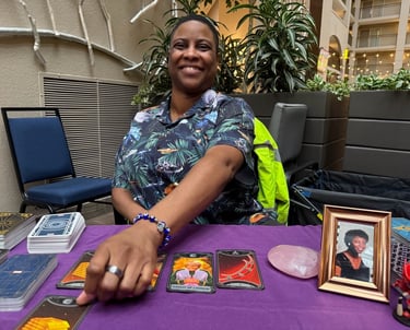 🖖🏾I’m Dre, The Psychic Nerd—a Black, intuitive nerd navigating the inner and outer galaxies of the human experience. Trained in tarot, astrology, mediumship, and Jungian insight, I bridge the mystical with the logical to guide fellow travelers through their own personal star charts. My work is soul-deep, trauma-informed, and laced with a healthy dose of nerdcore wisdom. I reclaim space in spiritual and geek realms alike — because everyone deserves a seat on the starship. This isn’t about fixing you. It’s about decoding your energy, syncing with your power, and helping you boldly go where your soul has always wanted to.